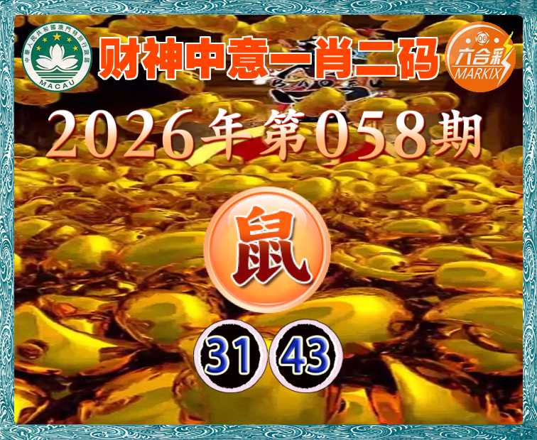 058期:『财神中意』 一肖二码】【31.43】开:鼠31